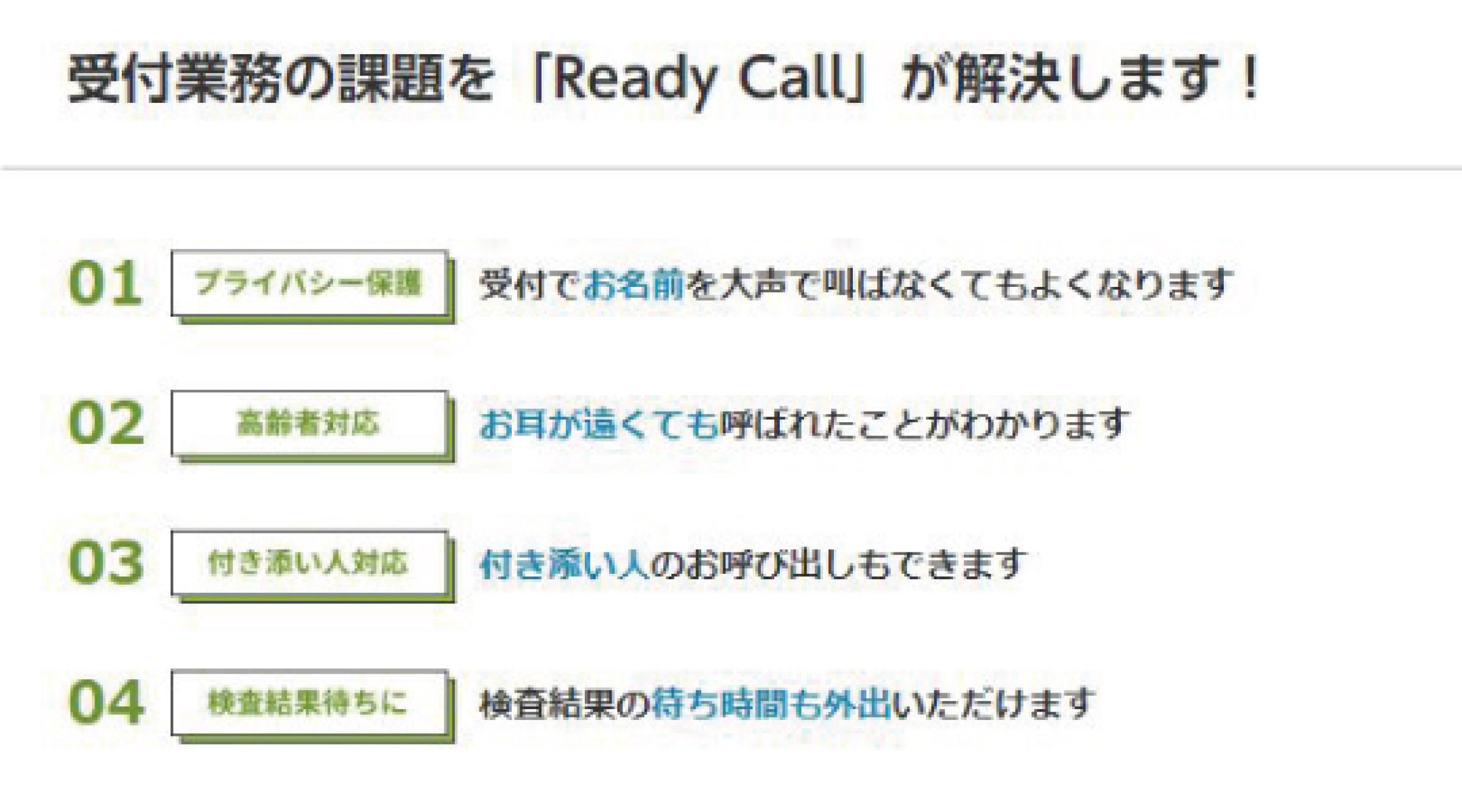 お客様のお呼出しをより便利に、混雑解消にお使いいただける、待つ場所を選ばない呼出サービス「READY CALL」